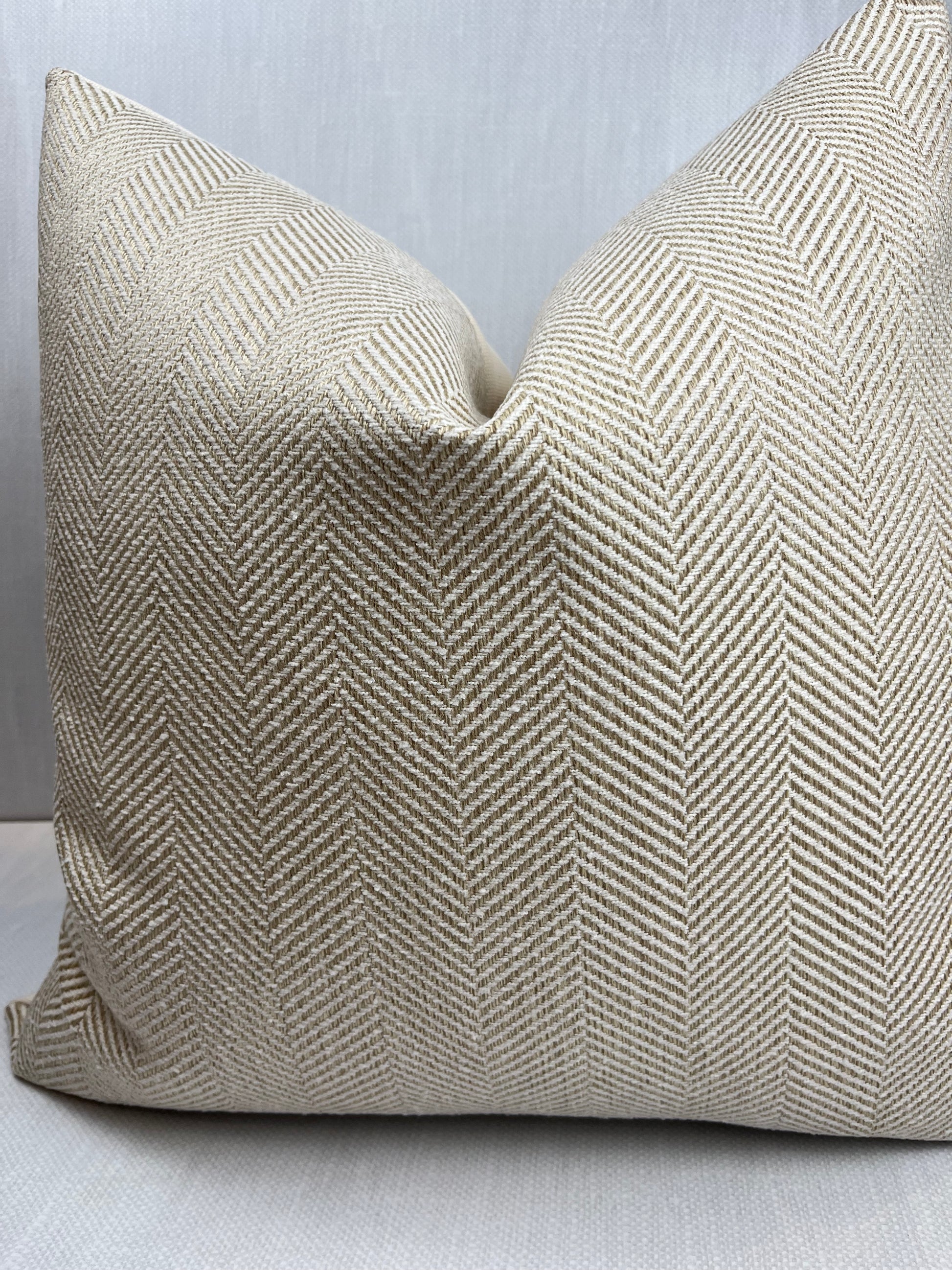 Pillow Cover made from a natural ecru colored herringbone fabric.