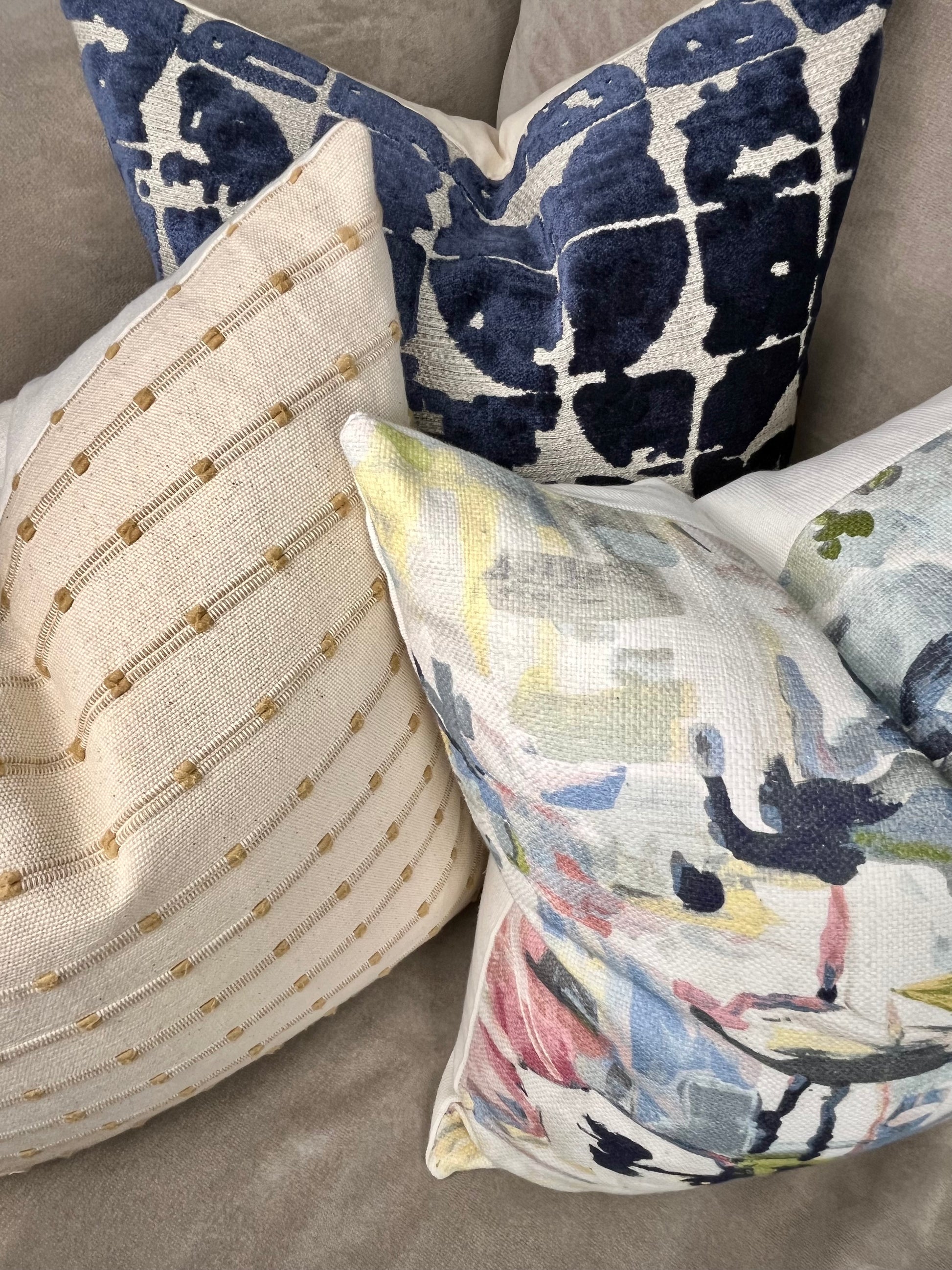 There will be variances in pattern placement from the photo and from pillow to pillow.