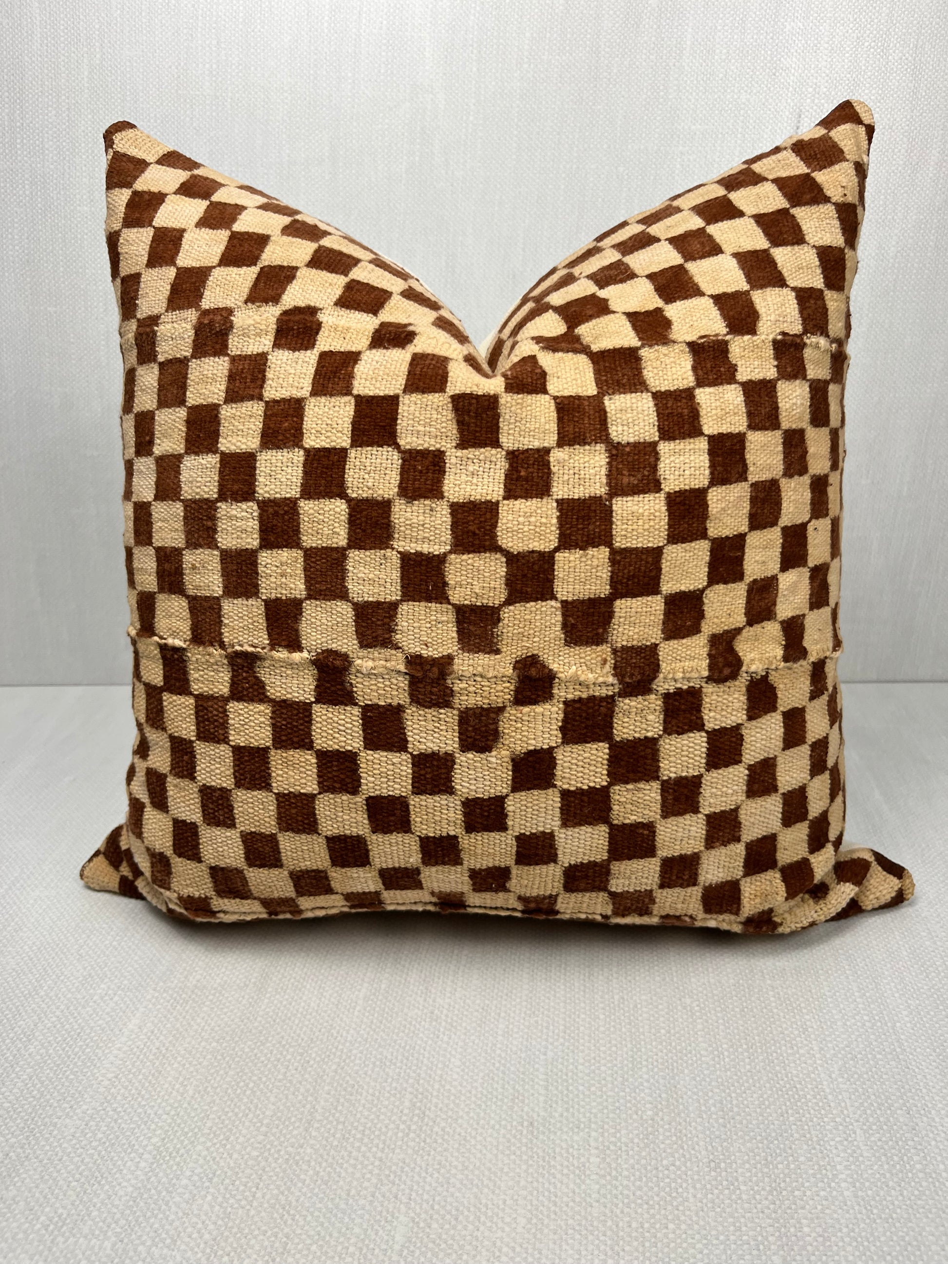 This pillow cover in Brown and Beige Checkered is made from authentic African mudcloth. The texture and simple geometric pattern makes for a great accent piece for your bed or couch.