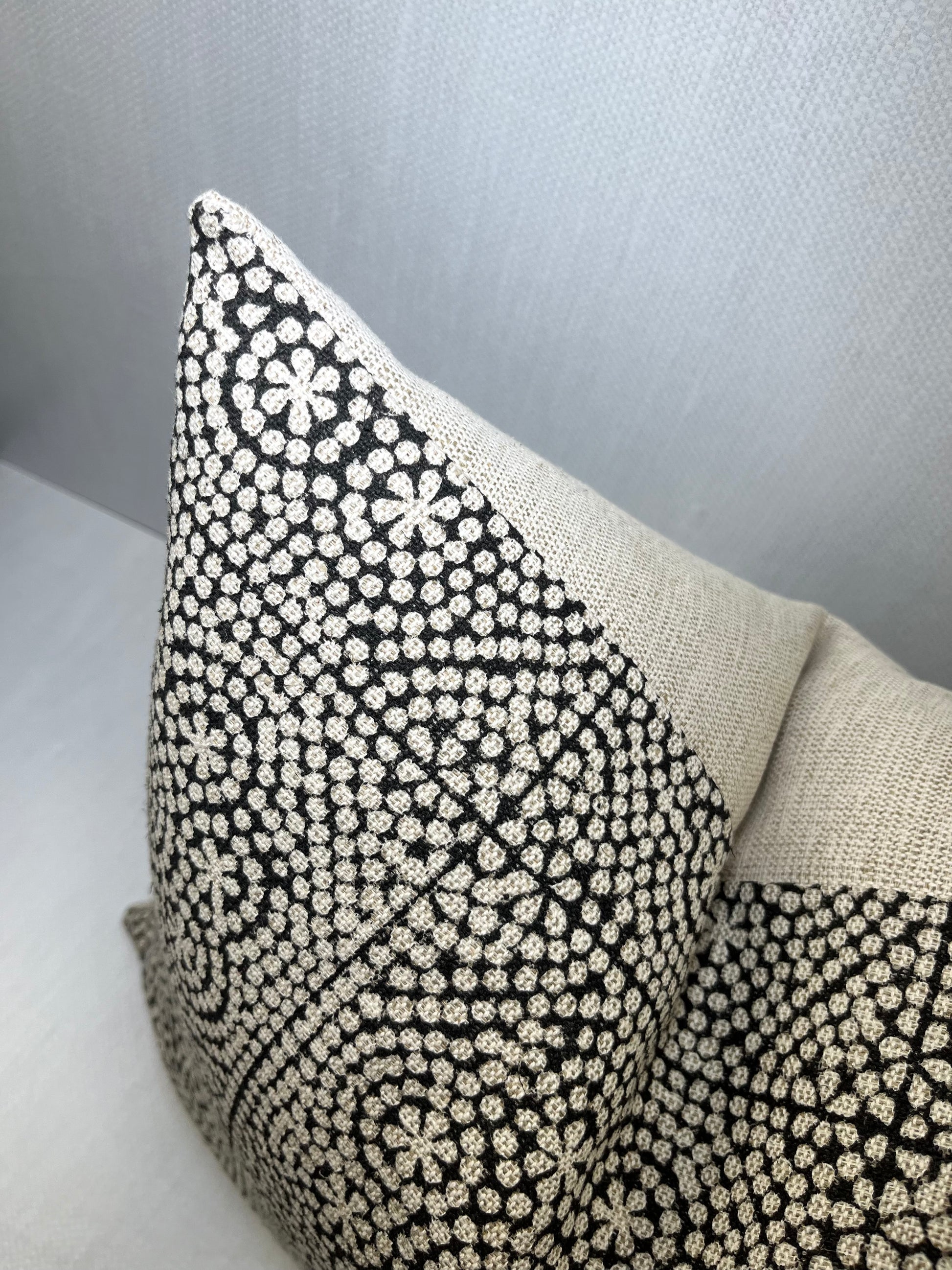 Penelope Black Dotted Block Print Linen Pillow Cover
