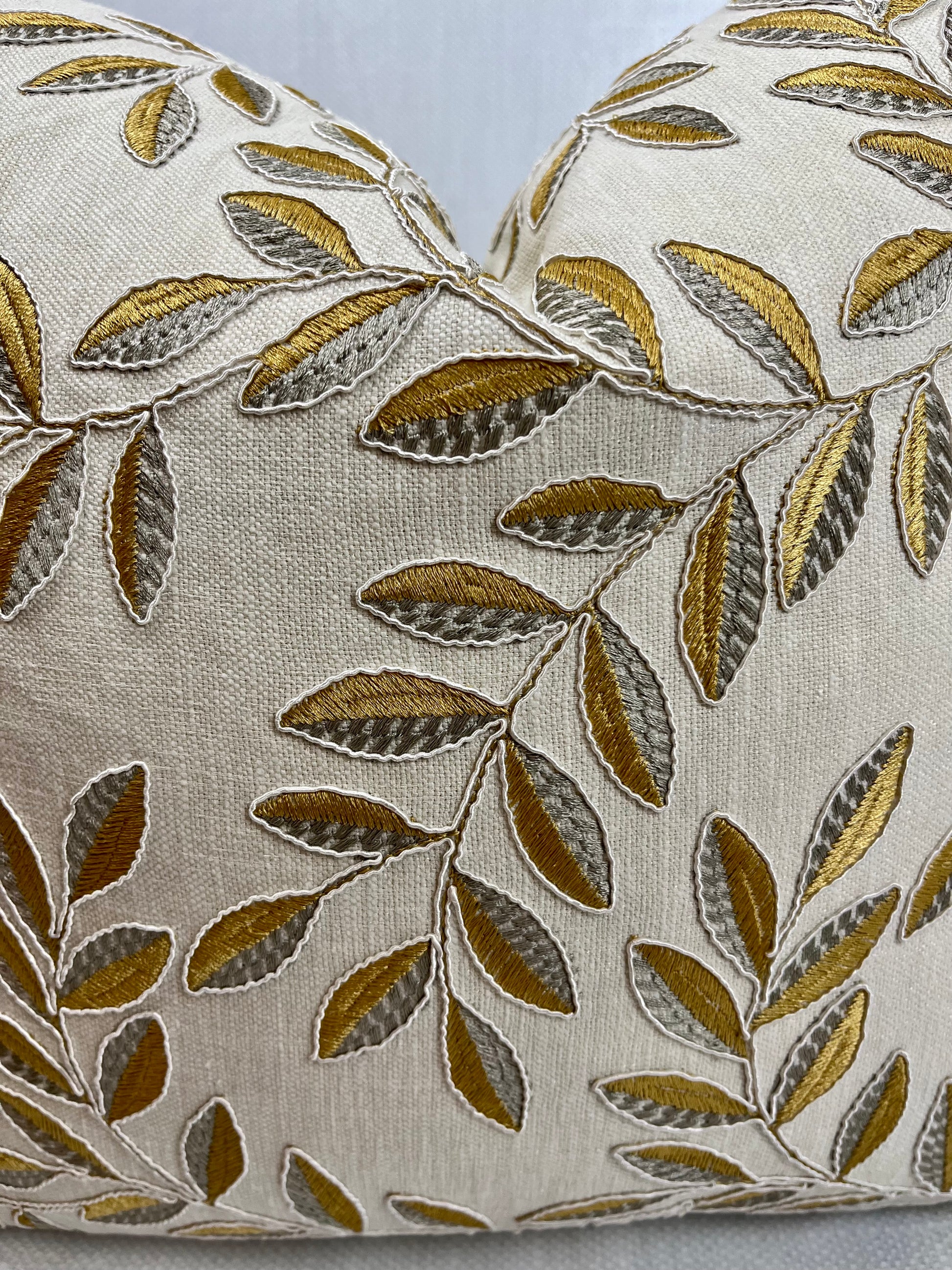 Rhea Gold and Silver Leaf Embroidered Pillow Cover